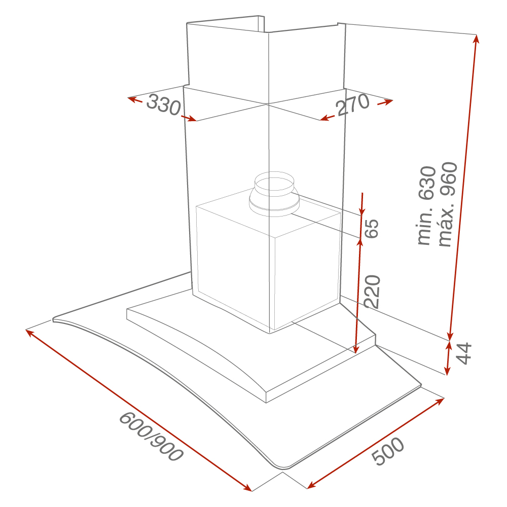 Καμινάδα τοίχου 60cm με κρυστάλλινο πτερύγιο